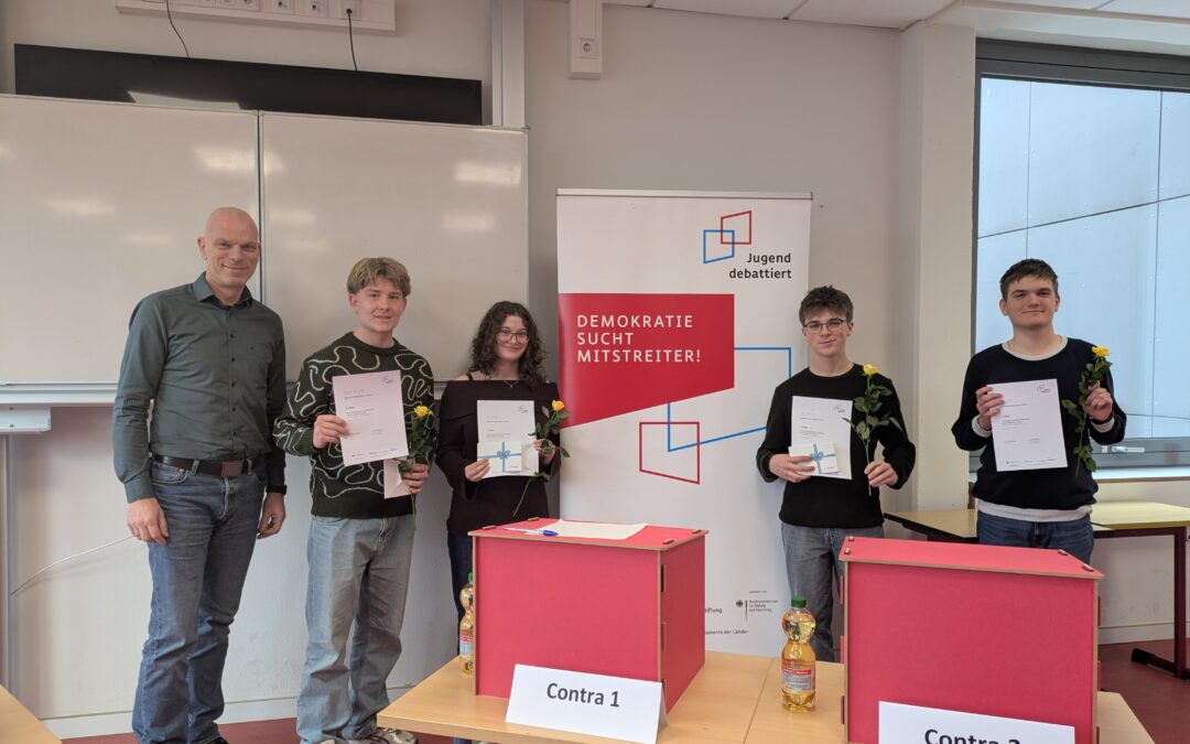 Am 10.02. fand am MGH das diesjährige Schulfinale von „Jugend debattiert“ statt, welches in zwei Altersklassen (Klasse 10 und Oberstufe) ausgetragen wurde. Nach einer kurzen Begrüßung und Erläuterung des Ablaufs der streng geregelten Debatten durch Herrn te Heesen ging es zunächst für die Klassenfinalistinnen und -finalisten der 10. Klassen los, die
