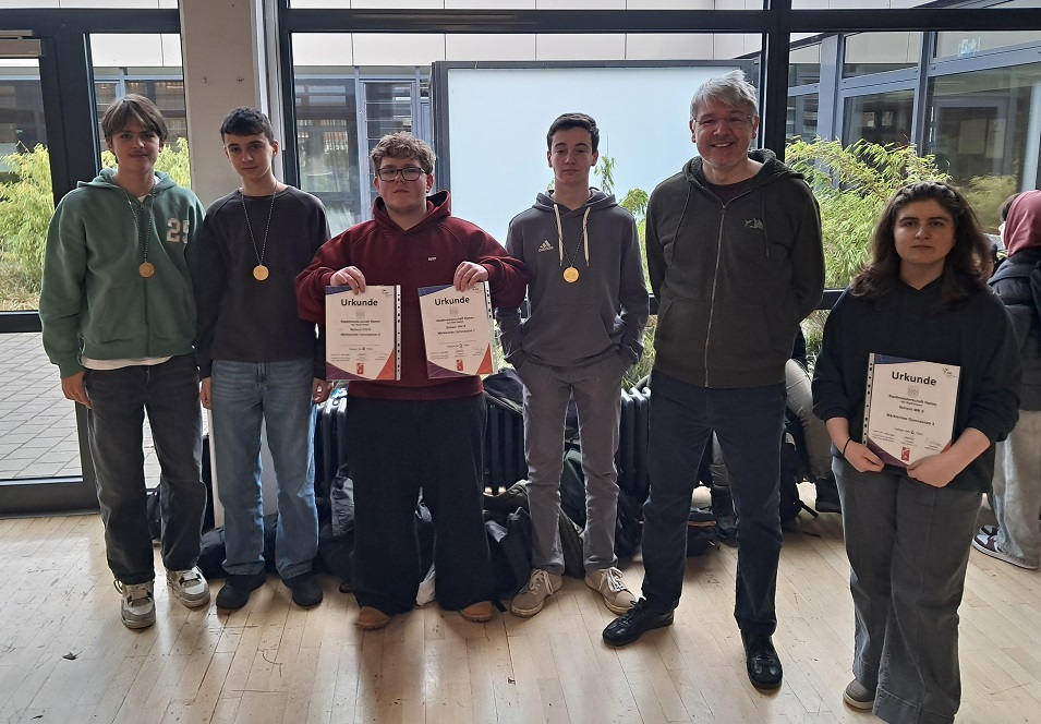 Nur denkbar knapp verpasste bei den diesjährigen Schulstadtmeisterschaften im Schach das Team I des Märkischen Gymnasiums den ersten Platz in der Wettkampfklasse II (2008 und jünger). Obwohl man den schärfsten Rivalen und späteren Sieger im direkten Aufeinandertreffen besiegt hatte, reichte es bei Punktgleichheit wegen eines Brennpunktes weniger in der Endabrechnung lediglich für Platz zwei. Von einer sehr erfolgreichen Teilnahme der Schule am Turnier, das am 8.1.2026 in der Sachsenhalle in Heessen stattfand, kann dennoch gesprochen werden, weil die beiden weiteren Mannschaften, mit denen das Märkische ebenfalls in der WK II gestartet war, die Plätze drei (Team II) und vier (Team III) von insgesamt acht teilnehmenden Mannschaften holten. Noch erfreulicher war aber, dass hinsichtlich der sechs Einzelwertungen nicht weniger als fünf erste Plätze von Spielern des MGH belegt wurden, die Julius Wilke vom Stadtsportbund Hamm dafür mit Medaillen auszeichnete. Im Einzelnen waren dies Yunus Demirhan (10a), Ömer Ekinci (10c), Eduard Neufeld (EF), Maik Rogalski (EF) und Christian Wintergalen (EF). Nach dem ebenso spannenden wie fairen Wettkampf konnte daher von den insgesamt 18 Spielerinnen und Spielern, die für das Märkische auf Punktejagd gegangen waren, letztlich zufrieden die Heimfahrt in den Hammer Westen angetreten werden.